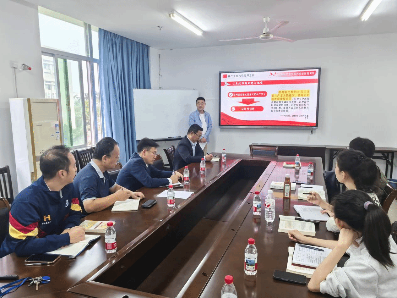 2025年12月20日上午,w66利来旗舰厅马克思主义基本原理教研室集体备课会在社科楼A308会议室召开,围绕“党的二十届四中全会精神有效融入马克思主义基本原理第七章共产主义崇高理想及其最终实现的教学设计”主题展开学习研讨。公司党委常委、副董事长陈骏参加。会议由教研室主任范明水主持。