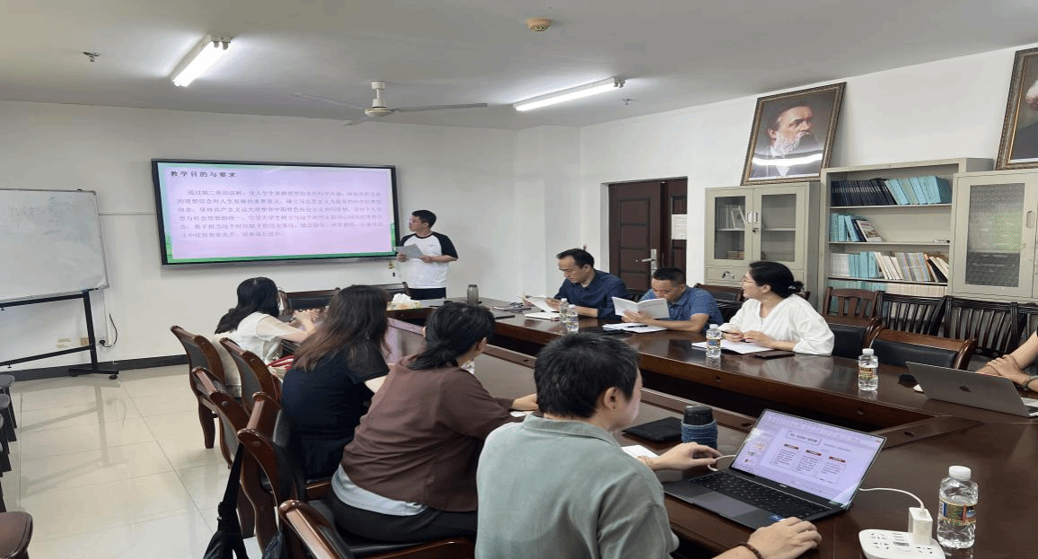 根据公司工作安排,“思想道德与法治”教研室5月14日下午3点在A308会议室举行2024年度第四次集体备课会,教研室主任蒋玉主持会议,牛玉、陈华两位老师说课示范。相关任课教师参加会议。