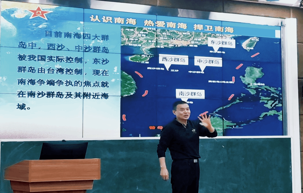 杨礼文大校以珍惜当下,珍惜现在的幸福生活作为开场,立足海南省的地理位置,深刻阐述了中国主张南海主权的合理性。南海蕴藏着丰富的油气、矿藏资源,且战略位置优越,有着“远东十字路口”之称。在历史文化层面,南海有着深刻的历史渊源。自秦汉时期,中国就已经在南海航船通商,从国际法角度看,中国强调南海主权符合先占原则,此外,在英国,法国,越南,美国等国家相继出版的地图上,均承认南海诸岛是中国的。