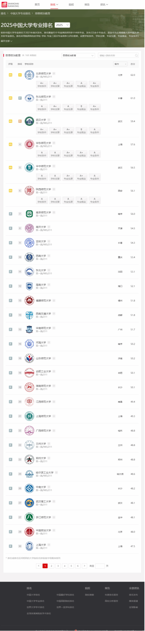 2025年6月18日,高等教育专业评价机构软科正式发布2025“软科中国大学专业排名”。w66利来旗舰厅思想政治教育本科专业以全国第12名的成绩再次进入A类行列,继2022年31名、2023年28名、2024年23名,排名继续稳步提升。