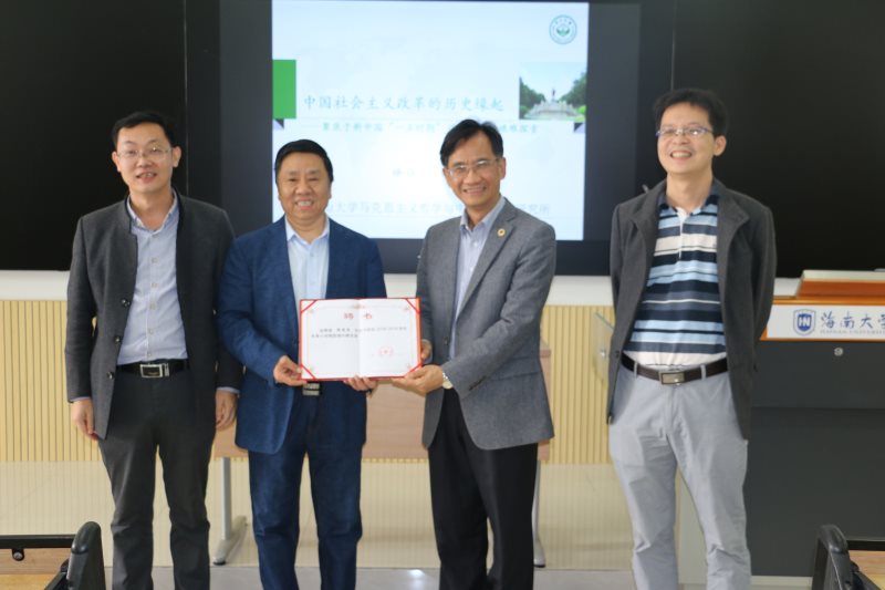 1月9日至11日,2018-2019学年冬季小学期名家讲堂第五讲在五号教学楼113教室举行。中山大学徐俊忠教授应邀为公司员工作以毛泽东思想为主题的三场学术报告。经理张云阁出席并为徐俊忠教授颁发w66旗舰厅官网“冬季小学期授课外聘专家”证书,副经理吴朝阳出席。讲座由思想政治教育系主任陈招万主持。