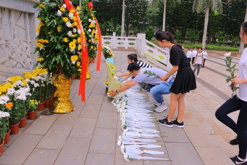 在郁郁葱葱的掩映中,在鲜红的w66利来旗舰厅院旗和研究生、本科生党支部党旗的映衬下,解放海南岛革命烈士纪念碑显得格外庄严肃穆。党员同志、入党积极分子和共青团员代表们手持黄白菊花肃立,表达着对人民英雄的深切缅怀和崇高敬意。在巍峨耸立的英雄纪念碑前、在镌刻着20161名革命烈士英名的烈士墙下、在一座座烈士墓旁,大家用心聆听烈士英雄事迹,鞠躬鲜花,长久驻足,致垂首之哀思、燃缅怀之心香,感受先烈英魂之中蕴藏的精神之力、信仰之光,也在心中竖起一座座丰碑。