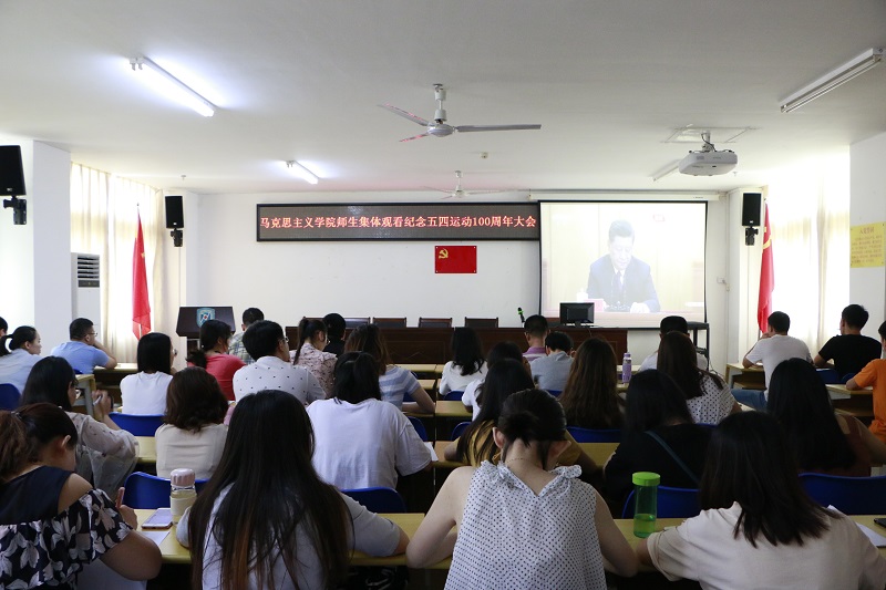 4月30日上午,w66利来旗舰厅组织师生在社科楼A315集体观看了“纪念五四运动100周年大会”的直播实况。公司党委书记段捷频、副书记张井富、研究生辅导员张君成与全体在校研究生及部分本科生一起观看直播。