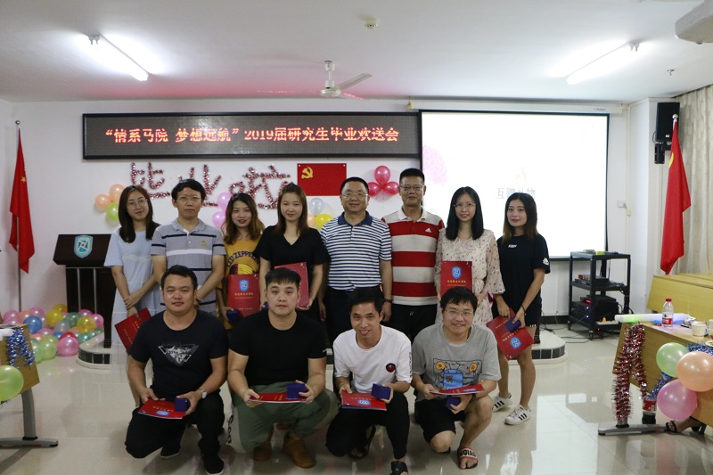 6月1日晚,w66利来旗舰厅以“情系马院 梦想起航”为主题的2019届研究生毕业欢送会在社科楼A-315顺利举行。公司党委书记段捷频,研究生导师李英华教授,研究生辅导员张君成老师出席,全体在校研究生参与活动。研究生毕业生严莹和2018级研究生葛士华担任晚会主持人。