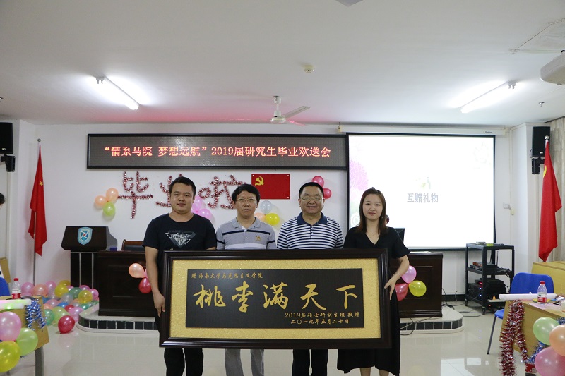 欢送会上,2019届研究生毕业生向公司赠送了“桃李满天下”的牌匾,段捷频、李英华和张君成老师代表公司向全体毕业生发放公司选宣传册和纪念品。研究生毕业生代表潘男和在校研究生代表张萌分别在晚会上发言。欢送会节目形式包含歌曲、二胡独奏、游戏等,现场气氛热烈,同学的精彩表演获得大家的热烈掌声。