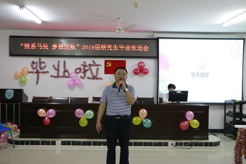 段捷频在欢送会代表学全院师生对2019届全体研究生顺利毕业表示热烈祝贺。他表示,全体2019届研究生不仅按要求完成学业顺利毕业,还在全面发展方面表现出色,多位同学在全省和全校性重要活动中多次为公司赢得荣誉,研究生会被评为公司优秀研究生会标兵,研究生党支部入选公司“样板党支部”,为公司建设发展做出了积极贡献,也为学弟学妹树立了很好的榜样。他希望,全体研究生毕业生继续保持勇于拼搏、积极进取的精神,在人生新的征程中为国家做出新的贡献,让公司以同学们的表现为荣。最后,他为全体2019届研究生毕业生送上了良好的祝福。
