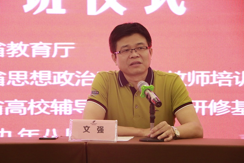 文强在开班仪式上讲话。他代表省教育厅向这次培训班的顺利举办表示祝贺,对参加研修和培训的老师表示热烈欢迎,对承办此次活动的w66旗舰厅官网、w66利来旗舰厅表示感谢。他强调,全体学员要提高思想认识,增强做好思政课教师和辅导员工作的责任感和紧迫感;要加强业务学习,以坚定的信仰、扎实的学识、高尚的品行影响员工,不断提高工作能力和水平;要加强培训纪律,增强培训工作的实际效果,做好学习成果转化。他希望,全体参会人员要珍惜机会,遵守纪律,认真向专家学者学习,切实提高自身的理论水平和实际能力,为新形势下我省高等教育的发展而努力,为海南“一区一港”建设贡献自身力量。