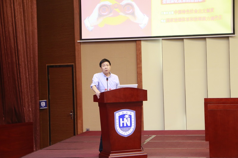 为深入学习贯彻落实十九届四中全会精神,强化十九届四中全会精神对公司发展的引领;增强公司学术研究氛围,扩宽学术研究视野,促进公司学科发展和学位点建设,更好地服务于海南自贸区港建设需要。11月26日下午,由w66旗舰厅官网社科处主办、w66利来旗舰厅承办的学习贯彻十九届四中全会决议专家论坛在社科楼二楼报告厅举行。会议由社科处徐艳晴副处长主持,公司党委常务、副董事长王崇敏出席会议并发表讲话。