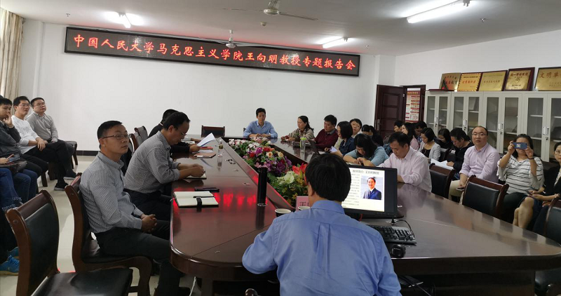 1月7日上午,中国人民大学w66利来旗舰厅王向明教授受邀莅临公司A-311做专题报告会,以“如何上好思政课”为主题,为公司教师上了生动有趣的一课。公司党委书记段捷频、公司副经理杨娜、吴朝阳、王善出席会议,公司各位老师参与会议。本次专题报告会由公司党委书记段捷频主持。