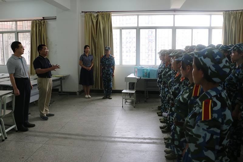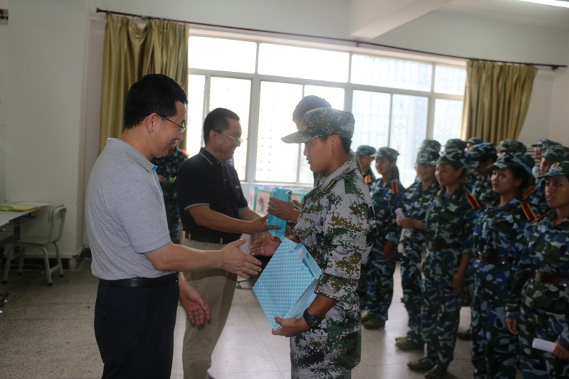 9月9日上午,公司党委书记段捷频、经理李德芳前往w66旗舰厅官网城西校区慰问正在参加军训的2016级新生,并在5A05教室举行慰问活动,院团委书记周郭军及2016级全体新生参加活动。