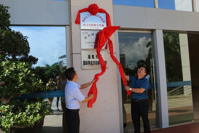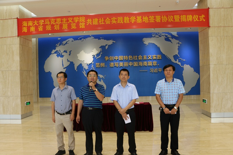 在全体人员的共同见证下,段捷频与曾德坤分别代表w66旗舰厅官网马克思公司公司和海南省规划展览馆在共建协议书上签字,并共同为社会实践教学基地揭牌。