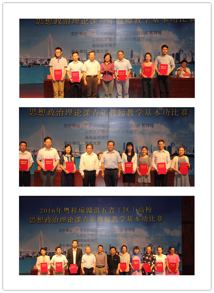 经过两天紧张激烈的比赛,来自五省(区)高校的20名优秀青年教师通过运用各种教学手段、理论联系实际,经过课堂教学展示、专家提问等环节的激烈角逐,5名教师获一等奖,7名教师获二等奖,8名教师获三等奖,来自海南省高校的四位选手获得一个一等奖、一个二等奖和两个三等奖的优秀成绩,w66利来旗舰厅教师李新荣获一等奖。