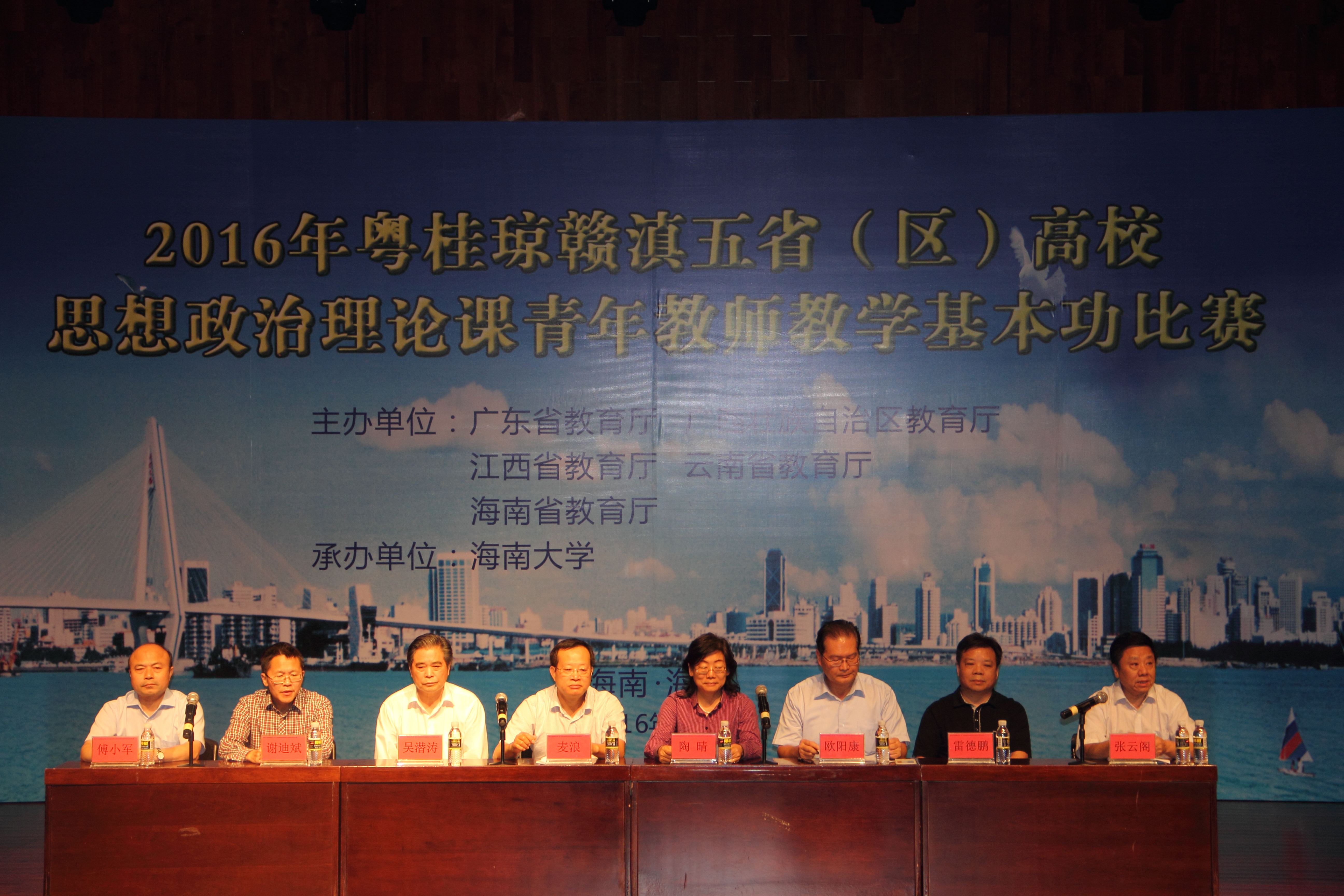 2016年11月2日—5日,第八届粤桂琼赣滇五省(区)高校思想政治理论课青年教师教学基本功比赛在公司隆重举行,省委教育工委专职副书记麦浪,广东、广西、海南、江西、云南等五省(区)教育工委、教育厅有关负责人,w66旗舰厅官网党委常务副书记廖清林出席,来自五省(区)近100余名教师代表参加开幕式。会议由海南省教育厅思政处处长文强主持。