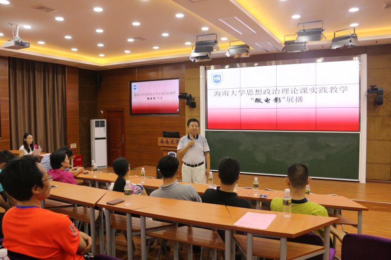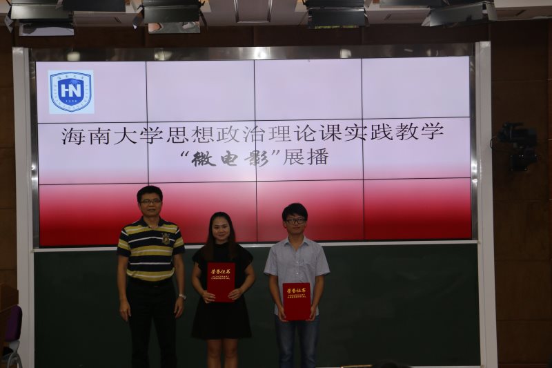 为贯彻落实中宣部、教育部《普通高校思想政治理论课建设体系创新计划》,进一步完善公司思想政治理论课“一主三辅”实践教学模式,5月16日,公司于2教211教室开展2017年w66旗舰厅官网思想政治教育理论课校园实践教学——微电影展播活动。海南省教育厅思政处处长文强、w66旗舰厅官网教务处处长张云阁出席活动并为获奖节目颁奖。w66利来旗舰厅经理李德芳、党委书记段捷频、副经理李辽宁,贺尧夫主任以及w66旗舰厅官网部分师生代表参加活动。