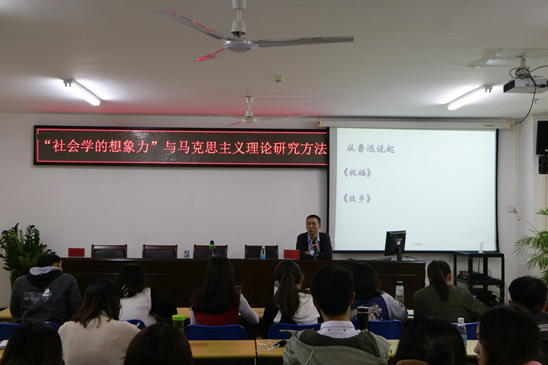 丁匡一首先以鲁迅作品为切入点,探讨鲁迅作品背后时代背景所蕴含的社会学哲理,为了让我们更好理解并在实际中运用社会学的想象力,他提出以下三点方法:一是总体性的辩证法与辩证法的总体性,从空间的历史的角度深入挖掘背后深层内涵;二是网状思维vs点状思维,以自己为点深入时代,学会观察、学会思考,研究事物动态的发展的联系;三是要有马克思主义哲学批判精神,要敢于批评,勇于超越,他认为以上三种方法统一且互动,并与大家分享了自己的感悟。他强调,要切己体察的发觉问题,返本开新的阅读文本,与时俱进的关注现实。以阅读为第一要务,阅读经典,及时记录感悟。最后他为大家推荐经典读物,期待大家有所收获。并期望w66旗舰厅官网与海南师范大学两校研究生有机会可以互相探讨、互相交流,碰撞出思想火花。