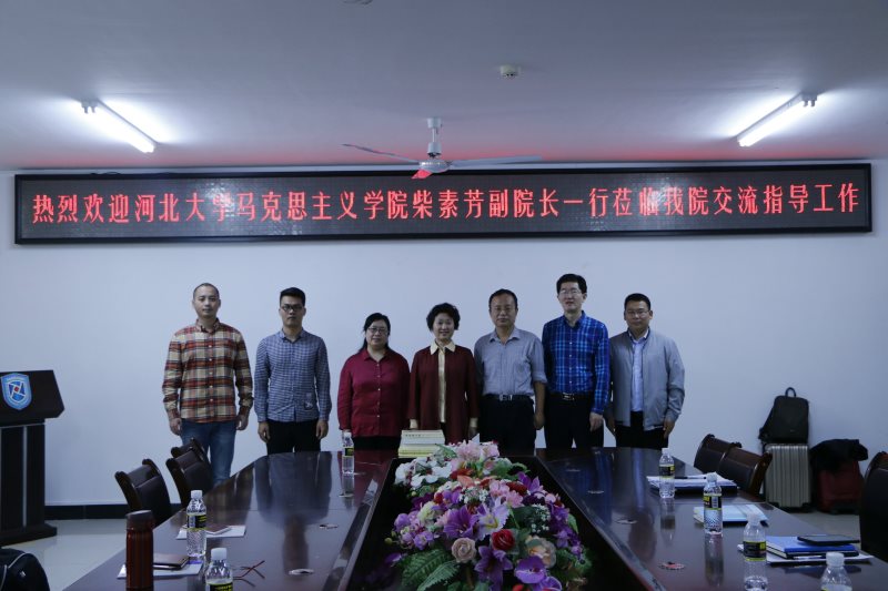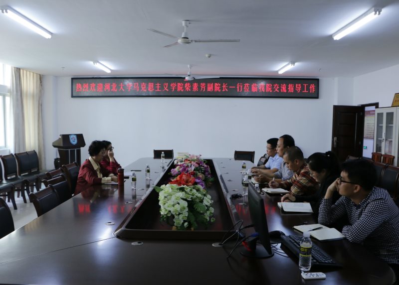 3月23日下午,河北大学w66利来旗舰厅副经理、博士生导师柴素芳教授一行2人到公司w66利来旗舰厅考察交流,w66利来旗舰厅副经理王善、马克思主义中国化教研部主任贺尧夫、形势与政策教研部主任温小平等5位教师参加了交流活动,活动由王善主持。