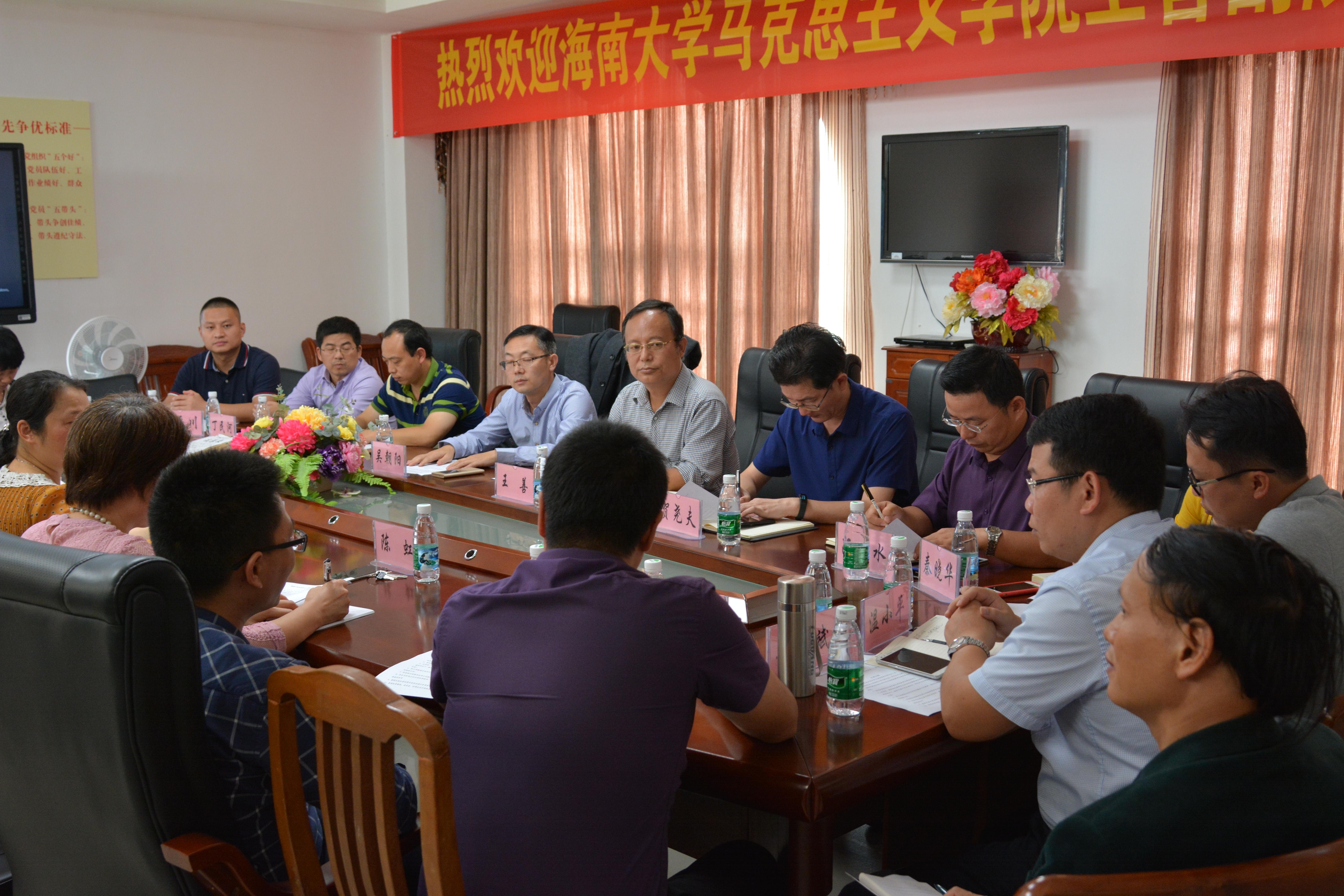 近期,w66利来旗舰厅副经理王善、教学委员会副主任贺尧夫带领思想政治理论课五个教研部负责人和部分骨干教师等一行14人赴海口经济公司马克思主义院进行教学交流研讨活动。w66旗舰厅官网教务处副处长吴朝阳、教务系统负责人熊玉阁、教务科科长丁民河也一同参加了此次活动。