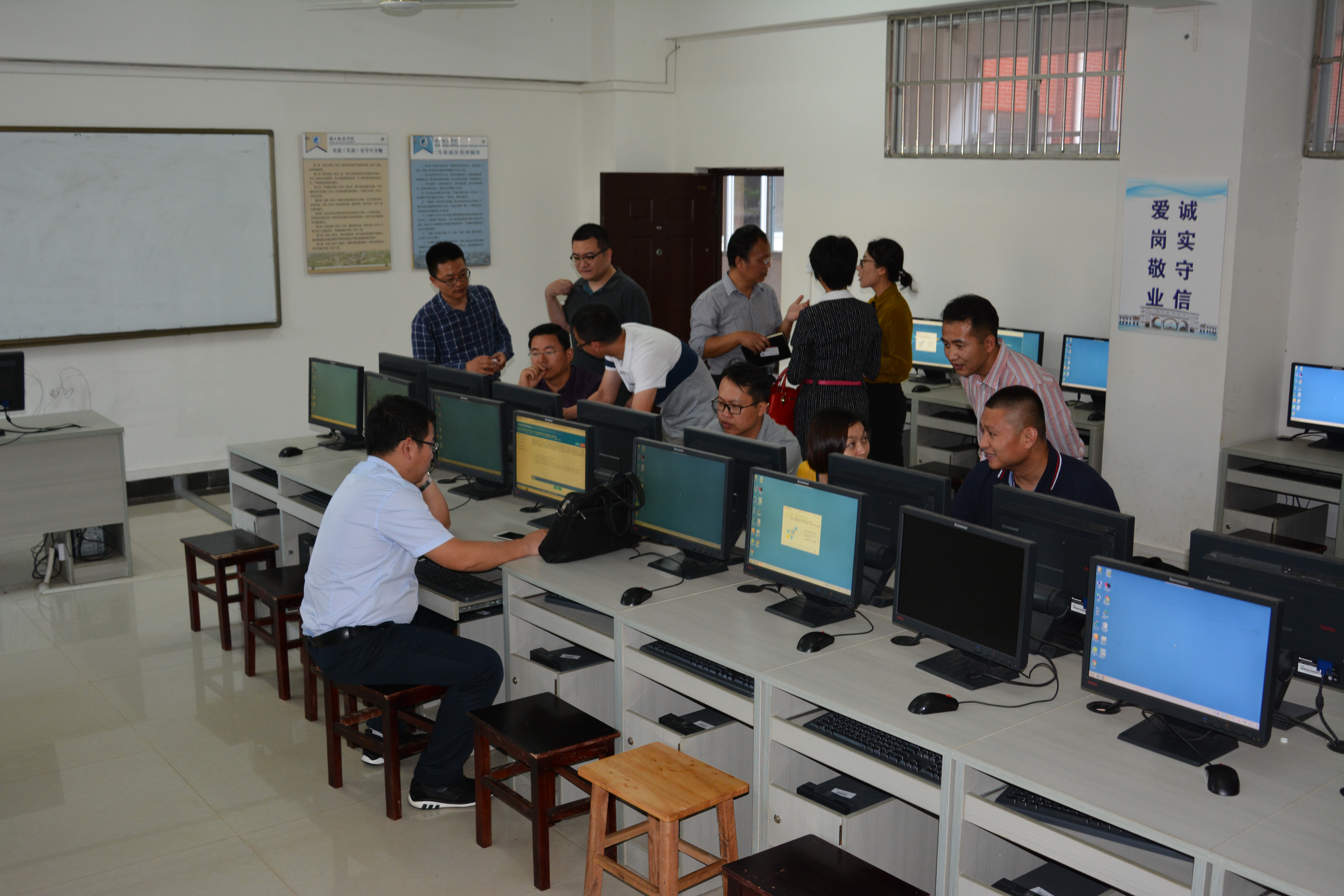教学交流研讨活动由海口经济公司马克思主义院经理刘素芳主持,海口经济公司教务处副处长陈虹、w66利来旗舰厅副经理栾忠恒等12位教师出席活动。本次交流研讨活动的核心议题是思想政治理论课无纸化考试。海口经济公司马克思主义院开展思政课无纸化考试的探索起步较早,积累了较为丰富的经验。海口经济公司陈红副处长首先介绍了教考分离改革总体情况及政策,栾忠恒副经理及两位教研室主任分别分享了试题库建设、机考软件硬件要求和具体工作程序等教学改革经验。