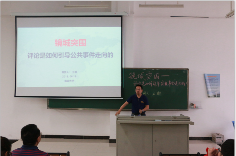 6月19日,w66利来旗舰厅“学习讲堂”在w66旗舰厅官网第五教学楼111教室再次开讲,海口日报社党委副书记、副社长王琳作题为“镜城突围——评论是如何引导公共事件走向”的专题讲座。讲座由公司党委书记段捷频主持。公司大一、大二、大三全体本科生参加本次活动。