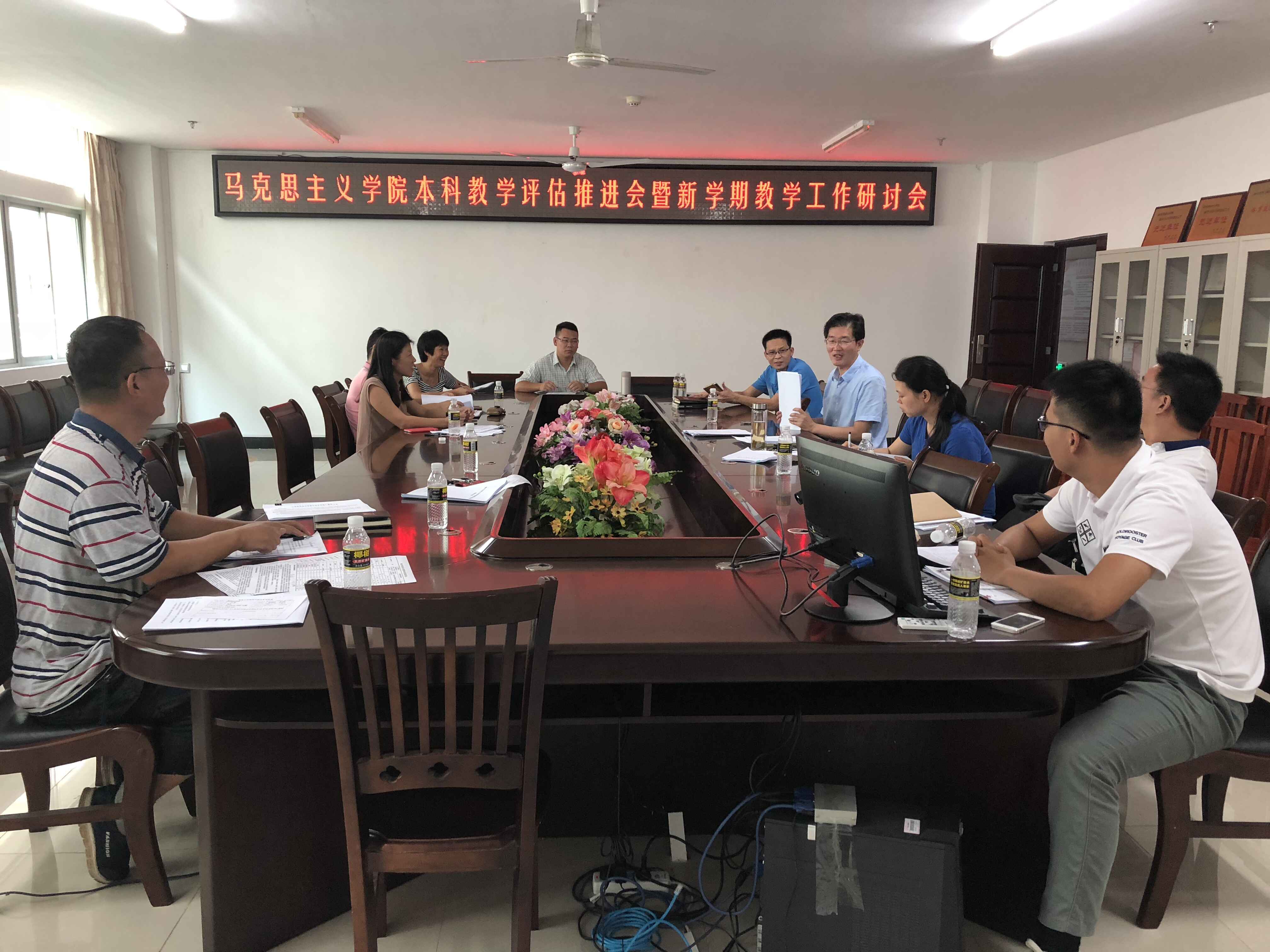 9月26日下午,w66利来旗舰厅在公司会议室召开了本科教学评估推进会暨新学期教学工作研讨会。会议由王善副经理主持。杨娜副经理、吴朝阳副经理、各教研部主任、思政系主任、教务办老师、实验室负责人等参加会议。