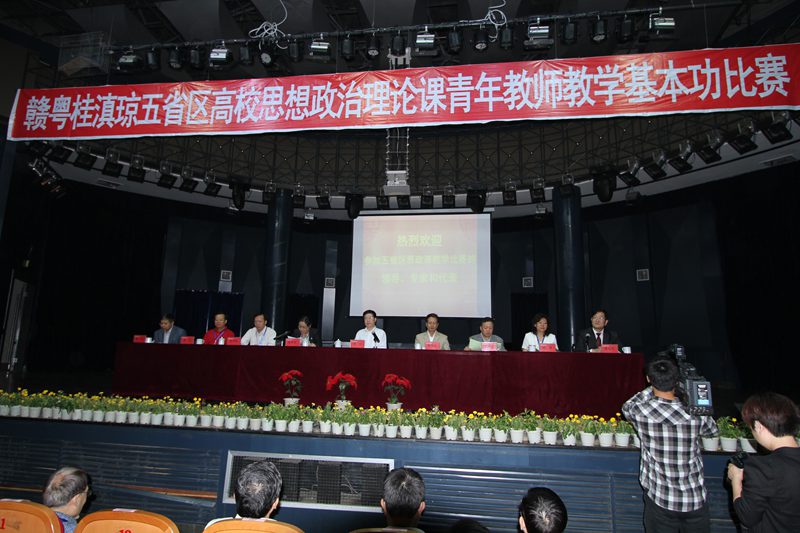 2012年10月16-17日,第四届赣粤桂滇琼五省区高校思想政治理论课青年教师教学基本功大赛在南昌航空大学隆重举行。教育部社科司司长杨光、副司长徐维凡,海南省教育工委副书记麦浪,江西、广东、广西、云南的教育工委、教育厅有关负责人出席了此次活动。本届比赛由江西、广东、广西、云南、海南五省区教育厅主办,江西省委教育工委、江西省教育厅承办,南昌航空大学、南昌大学承办,来自五省区 20名优秀青年教师参加了比赛。大赛组委会邀请了中国人民大学w66利来旗舰厅经理,博士生导师秦宣教授、华中师范大学政治研究院博士生导师俞思念教授、海南省社科联主席赵康太教授、中山大学教育科公司博士生导师钟明华教授等7位知名专家担任评委。