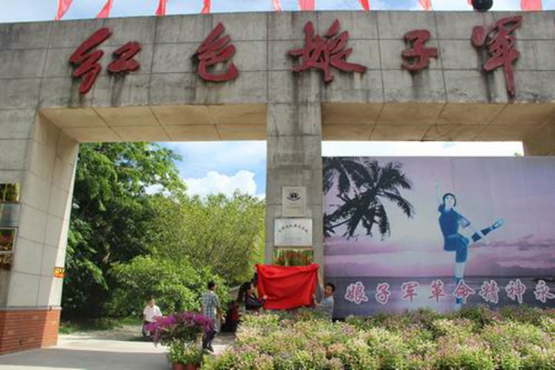 红色娘子军园陆宏茹经理和w66利来旗舰厅张云阁副经理共同为基地揭牌