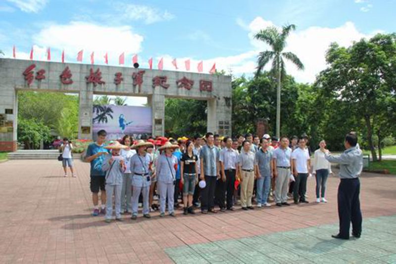上午十点,社会实践教学队伍在红色娘子军园广场举行了隆重的社会实践教学基地揭牌仪式。红色娘子军园陆宏茹经理与w66利来旗舰厅张云阁副经理分别讲话,并为基地揭牌。张云阁副经理代表w66利来旗舰厅向103岁高龄的红色娘子军老战士王运梅赠送了锦旗。同学们开展了升旗仪式、唱红色娘子军连歌等活动后,由三位内导引领入园参观。红色娘子军园的社会实践活动,广老员工上了一堂生动的革命传统教育课,深深地被革命先烈抛头颅洒热血,为真理而献身的革命精神所震撼,对十八大报告中的“道路自信”有了更深刻的理解。