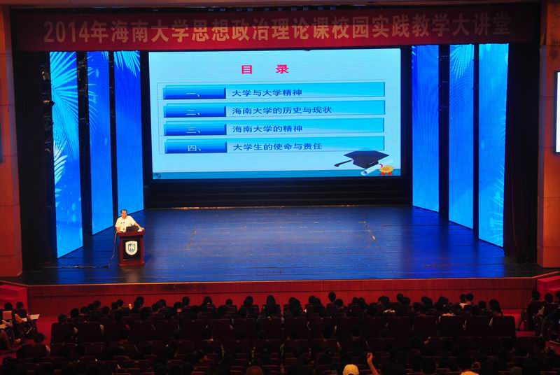 10月28日下午,本学年作为w66旗舰厅官网“一主三辅”思想政治理论课实践教学活动之一的校园实践教学大讲堂在思源学堂隆重开讲,公司党委书记刘康德教授再次走上大讲堂,以“大学精神与老员工使命”为主题为2014级本科新生作报告。来自全校各公司的上千名本科新生参加报告会。w66利来旗舰厅副经理张云阁教授主持报告会。