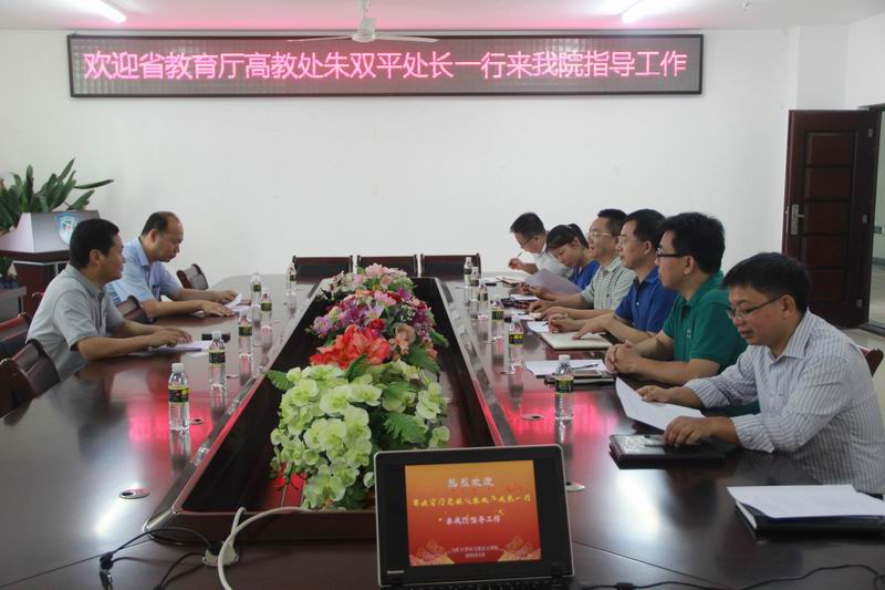 5月13日上午,省教育厅高教处处长朱双平、副处长杨鹏到公司调研,董事长办公室副主任陈卫东、教务处副处长胡先文,公司经理李德芳、公司党委书记段捷频、副经理杨娜和部分教师代表参加调研座谈会。 在调研座谈会上,朱双平处长一行详细了解省委教育工委、教育厅与w66旗舰厅官网共建w66利来旗舰厅相关事宜的落实情况,并就w66利来旗舰厅如何进一步提升思想政治教育课的实效性,以及进一步发挥好在全省高校中的示范作用提出了指导意见。会后,朱双平处长一行还实地查看了公司网络实验室等条件建设情况。
