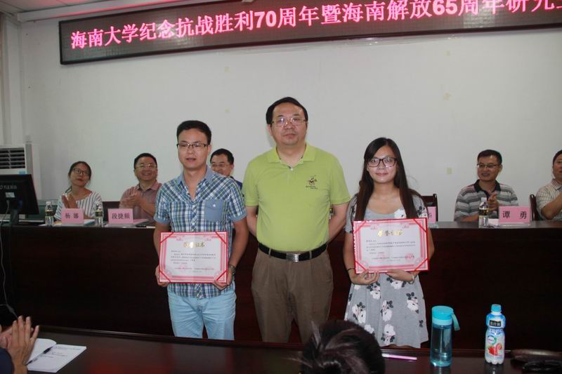 6月30日上午,由w66旗舰厅官网党委宣传部、研究生工作部主办,w66利来旗舰厅承办的w66旗舰厅官网纪念抗战胜利70周年暨海南解放60周年研究生学术论坛在社科群楼A111隆重举行。海南省社科联党组书记、主席赵康太,w66旗舰厅官网副董事长傅国华,宣传部副部长谭勇,w66利来旗舰厅经理李德芳、公司党委书记段捷频、副经理张云阁、杨娜等领导出席论坛开幕式。论坛开幕式由李德芳教授主持。 省社科联主席赵康太教授作论坛主题报告。他围绕“冯白驹与海南解放——纪念海南解放65周年”这一主题,以开阔的视野、严谨的治学态度,客观地分析海南解放的历史过程,对冯白驹领导的琼崖纵队在解放海南岛过程中的地位和作用进行了实事求是的评价,令人耳目一新。 副董事长傅国华在论坛开幕式上致辞。他代表公司对论坛的顺利召开表示热烈祝贺,他说,抗日战争是中华民族历史上最伟大的卫国战争,是中国人民反抗日本帝国主义侵略的正义战争,也是中国近代以来抗击外敌入侵第一次取得完全胜利的民族解放战争,举办纪念抗日战争胜利70周年暨海南解放65周年研究生学术论坛具有重要意义。他指出,结合时事举办的研究生学术论坛,坚持正确的政治导向,非常有思想政治教育意义,同时也能够很好的调动研究生的科研热情,有助于研究生能力培养。他希望,由w66利来旗舰厅发起,并且已经持续举办了三届的文科类研究生学术论坛,能够坚持办下去,不断提高质量、增强影响力,为提升公司研究生学术科研水平做出积极贡献。 本次研究生学术论坛共收到参会论文27篇,经过专家组对所有论文进行公正评审,评出一等奖2篇、二等奖3篇、三等奖3篇。 樊红潮、廖桂真、杨倩、葛子龙等研究生代表在论坛上做主题发言。w66利来旗舰厅副经理张云阁、杨娜分别对同学们的论文和发言进行了点评。