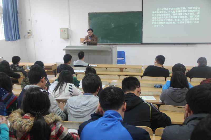 徐教授从“重新对新时期的基本认识”、“高等公司意识形态领域呈现从来没有过的良好态势”、“目前我国高等公司内在意识形态问题上仍然杂音不绝”三个方面对如何正确引导高校意识形态走向进行了精彩的解读。他结合自身经历,从时间和空间两个角度对新时期意识形态的认识做了详细的分析;他认为,随着党对高校领导的不断加强,高校逐渐把培育和践行社会主义核心价值观融入到教书育人的过程之中,近些年来,高校意识形态领域呈现良好态势;但与此同时,我国高校内在意识形态仍存在问题,反历史唯物主义、倡导新自由主义等所谓普世价值的意识形态问题充斥着校园。徐教授讲课中强调,我们必须牢牢把握思想舆论的阵地,对错误思潮要敢于亮剑、敢于斗争,大力发展精神文明建设,以确保中国特色社会主义事业顺利推进。
