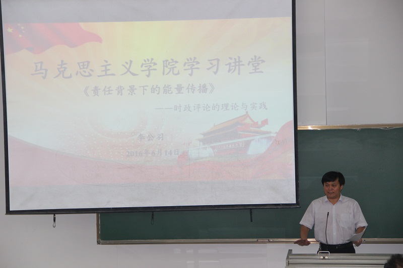 李公羽老师结合现实生活的具体事例对传统媒体与新媒体的融合发展趋势进行了介绍,并指出新媒体主动向传统媒体靠拢,形成了新的力量。从责任的角度对新媒体与传统媒体的区别进行了具体介绍,从而引出新媒体的特征及需要坚持守的原则。他针对时政评论的内涵、特点与相关要素,指出作为一名评论者要秉持平和、善念、敬畏的主体意识,以有效规范和消除网络负作用。在互动环节,同学们积极踊跃提问,李老师一一作了细心的回答,使同学们受益匪浅。 专题讲座之后,接着召开了针对同学们五月份的时政评论稿件的点评会。李辽宁、张君成和吴朝阳三位三位老师都从作品的优点及待改进的地方对每篇稿件进行了的点评,以帮助同学们认识不足,不断的提升时评写作水平。