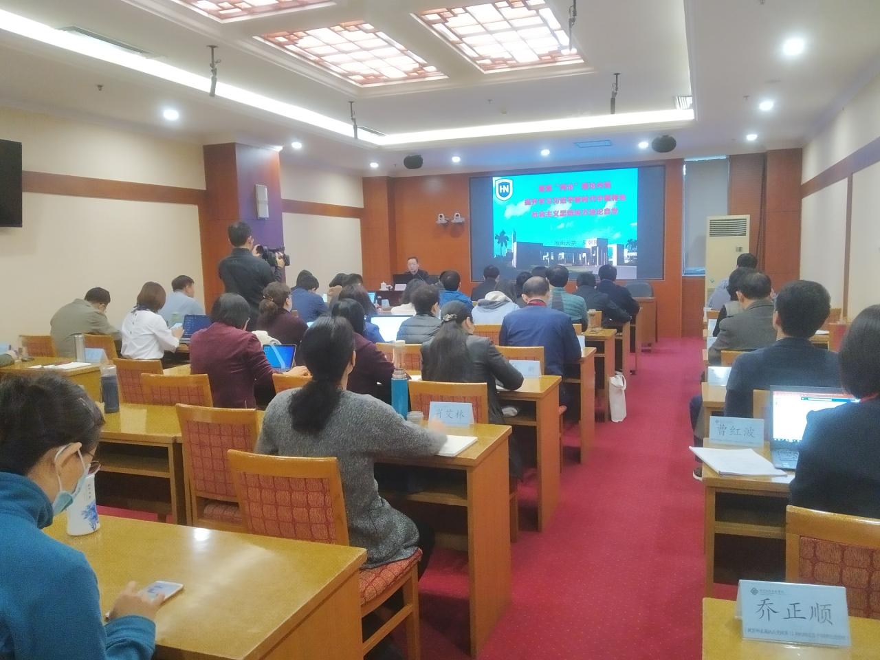 2020年10月22日上午,应教育部机关党校邀请,w66利来旗舰厅吴朝阳副教授在国家教育行政公司为教育部机关处级党员干部理论进修班讲课。吴朝阳副教授的报告题目是《重温“两论”理论内涵 提升学习习近平新时代中国特色社会主义思想的方法论自觉》,报告会由教育部中央电化教育馆朱广艳主任主持。