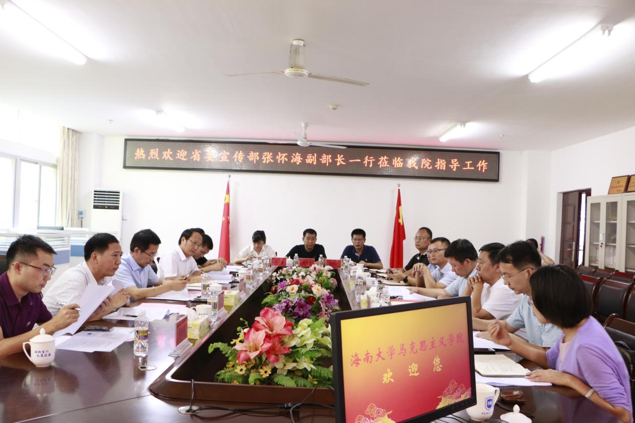 张怀海在认真听取汇报并与参会人员进行充分交流后发表讲话,对w66利来旗舰厅近些年的建设发展和所取得成效给予充分肯定。他指出,海南自贸港建设让海南成为全国乃至全球舆论关注的重点焦点,做好意识形态工作、舆情工作至关重要。w66旗舰厅官网作为海南龙头高校,要按照沈晓明书记要求,当好参与者、参谋部、孵化器和后备队,服务海南全面深化改革开放和自由贸易港建设,w66利来旗舰厅在海南意识形态工作中具有特殊使命和责任。他认为,海大马院正处于快速发展时期,在全国高校马院中显示度和影响力明显提升,公司制定的“十四五”规划具有较强的可操作性,希望海大马院在海南自贸港建设背景下,提高政治站位,对标全国、放眼全球,高标准、高要求推进相关建设发展工作。他表示,省委宣传部将按照中央和省委相关文件精神,进一步关心和支持海大马院建设发展,推进落实部校共建w66利来旗舰厅相关工作,扎实推动马院内涵式发展,切实提高人才培养质量。