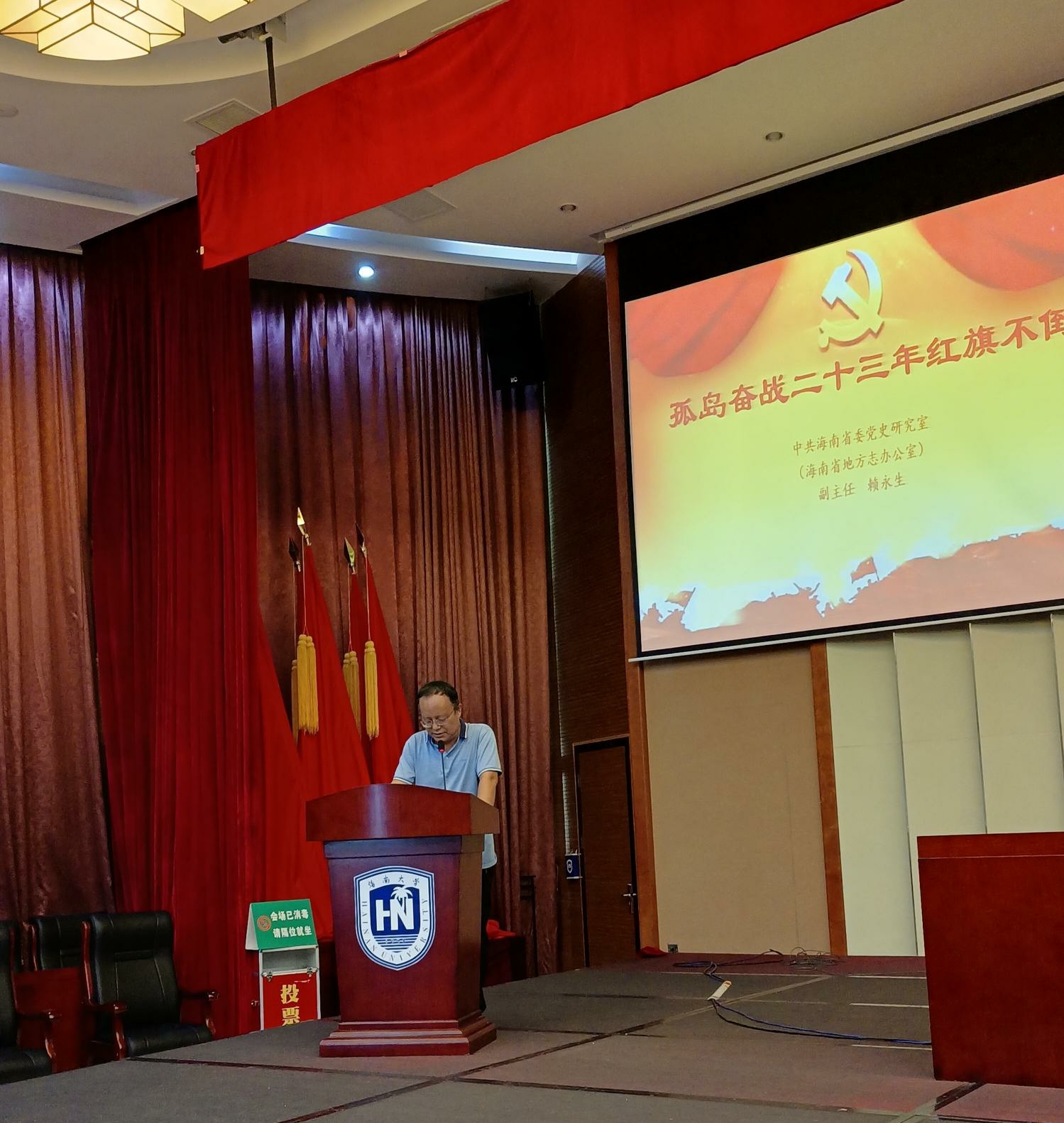 今年是中国共产党成立100周年,举国上下正有力有序有效地开展党史学习教育,为进一步帮助公司师生学习习近平总书记的重要指示精神,深化党史学习教育,引导我师生坚定信仰信念、涵养家国情怀、汇聚青春力量。9月28日下午,w66旗舰厅官网第二十三期形势与政策时事论坛在社科楼二楼报告厅举办。中共海南省委党史研究室(海南省地方志办公室)赖永生副主任受邀为w66旗舰厅官网师生作主题为《孤岛奋战二十三年红旗不倒》的专题报告,公司“形势与政策”授课老师及部分员工参加报告会活动。会议由w66利来旗舰厅副经理王善主持。