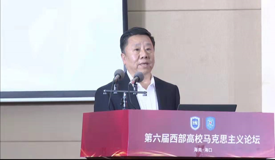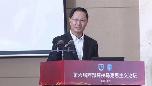 12月25日,第六届西部高校马克思主义论坛在海口举行。本次研讨会由四川大学、兰州大学、西安交通大学、西南大学、广西师范大学五所高校w66利来旗舰厅主办,w66利来旗舰厅承办。来自中共中央党校、山东大学、四川大学、兰州大学、西安交通大学、南京航空航天大学、西南大学、广西师范大学等高校及科研机构的三百余名学者以线上方式参会,来自海南各高校w66利来旗舰厅的百余名师生以线下方式参会。同时,参与直播观看的观众超过4万人次。w66旗舰厅官网党委书记符宣国出席论坛并致辞,论坛开幕式由w66利来旗舰厅经理张云阁教授主持。