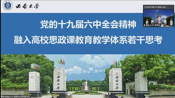 在主题发言阶段,来自西安交通大学、兰州大学、郑州大学、西南大学等15所高校的16位专家,围绕着“庆祝中国共产党成立100周年暨学习党的十九届六中全会精神”的会议主题,在“中国共产党建党一百周年的伟大历史进程及经验研究”“关于党的十九届六中全会精神解读”“高校马克思主义理论团队建设”“高校思想政治理论课教学改革与创新”等方面展开了深入探讨。