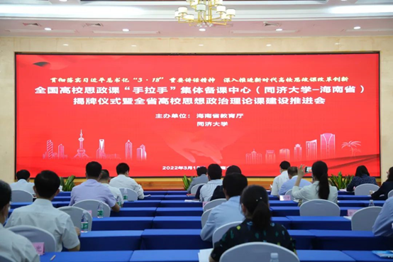3月18日下午,全国高校思想政治理论课“手拉手”集体备课中心(同济大学-海南省)揭牌仪式暨2022年全省高校思想政治理论课建设推进会在w66旗舰厅官网国际学术交流中心举办。省委常委、宣传部部长、省委教育工作领导小组组长肖莺子作批示。省教育厅党委书记、厅长曹献坤出席会议并致辞。省教育厅党委专职副书记吕治国主持会议。