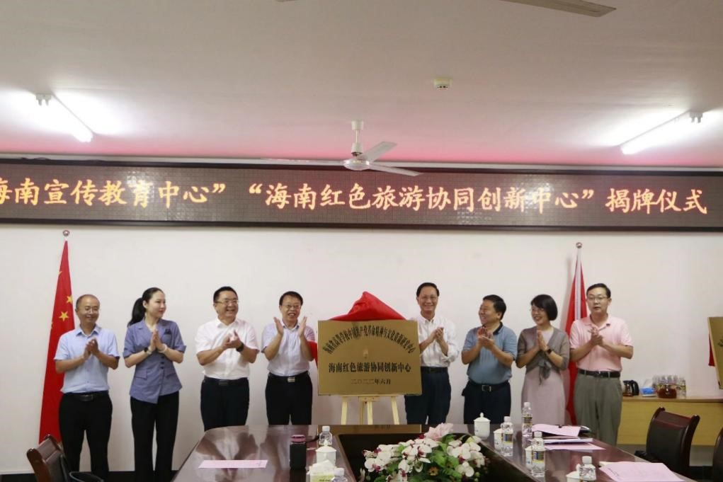 符宣国宣布 “海南宣传教育中心”“海南红色旅游协同创新中心”成立,并同与会人员一起揭牌。他强调,w66利来旗舰厅要高度重视“海南宣传教育中心”“海南红色旅游协同创新中心”成立后的研究工作,发挥服务社会的作用,并嘱咐公司一定要深入学习贯彻习近平总书记考察海南时的重要讲话精神,注重理论与实际相结合,给员工讲好中国故事、颂扬中国精神,不断提升思政课教学质量。