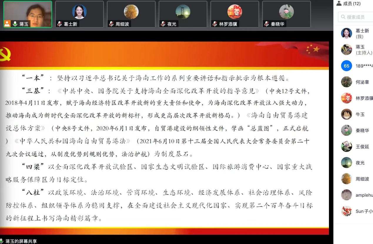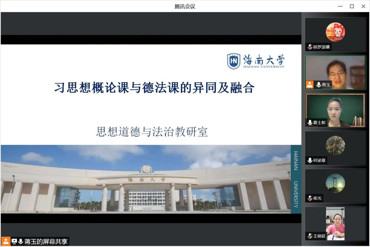 本次集体备课围绕《习近平新时代中国特色社会主义思想概论》课与《思想道德与法治》课的融通、《思想道德与法治》课重点章节的教学示范两个方面展开,周细波、葛士新、林罗添骥、牛玉四位老师做了精彩的教学展示。王俊延、蒋玉两位老师分别以“弘扬新时代中国共产党员的良好家风”和“持续深入学习习近平总书记2022年考察海南时的重要讲话精神及海南省第八次党代会精神”为主题进行了分享。