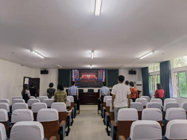 2022年10月16日上午10点,w66利来旗舰厅领导班子成员、党支部书记及部分老师代表于社科楼C309会议室集中收看中国共产党第二十次全国代表大会开幕会。