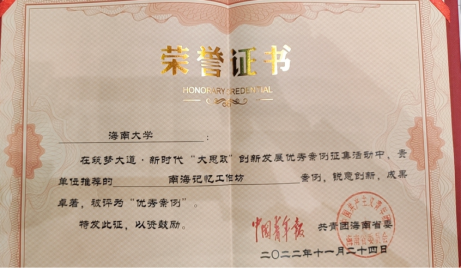 为深入学习贯彻习近平新时代中国特色社会主义思想,全面学习宣传党的十九届六中全会精神、党的二十大精神,落实立德树人根本任务,共青团海南省委和中国青年报社联合开展筑梦大道·全国青少年“大思政”创新发展课题研究。公司南海记忆工作坊,以其独特的创新性、高度的实践性,荣获筑梦大道·全国青少年“大思政”创新发展“优秀案例”。