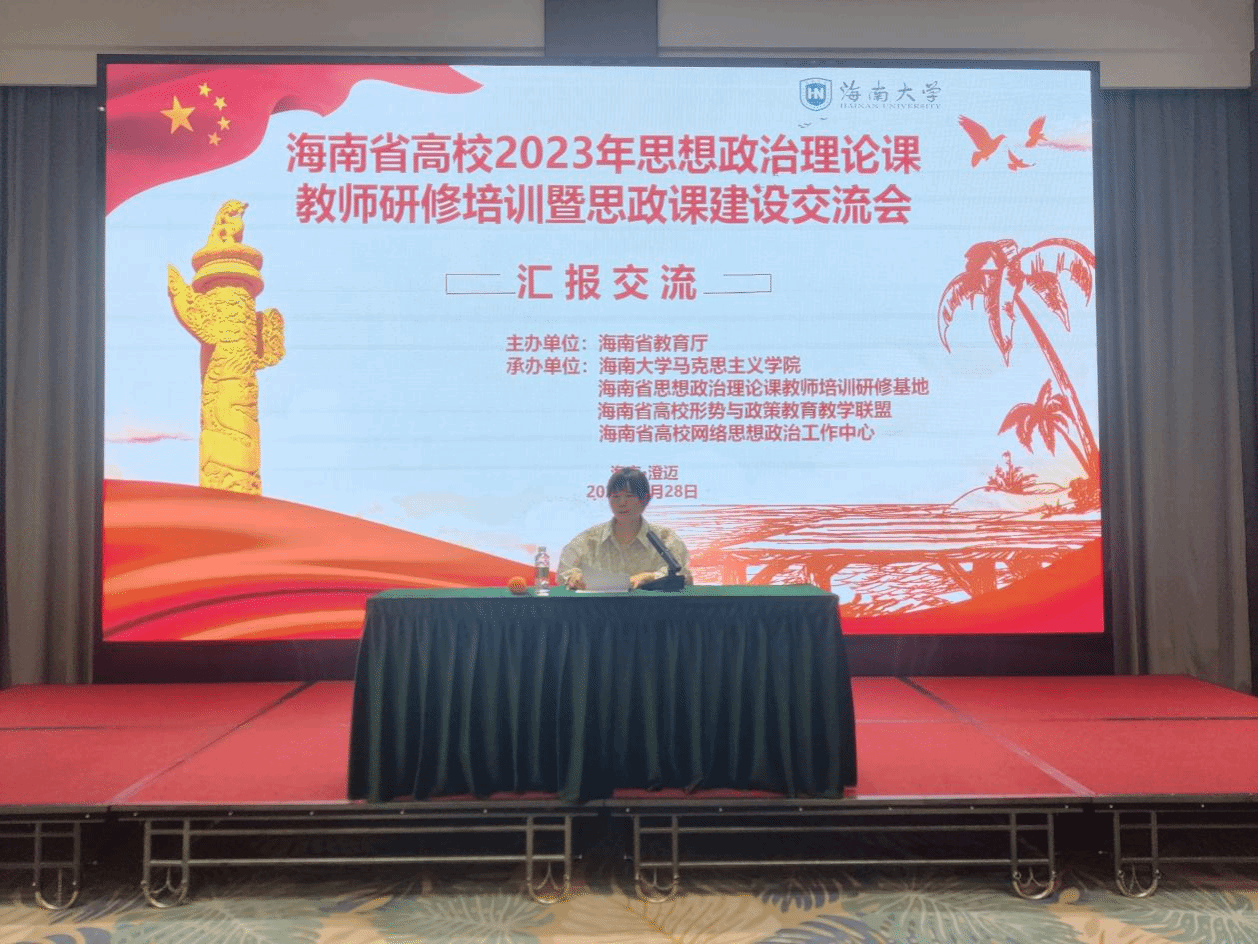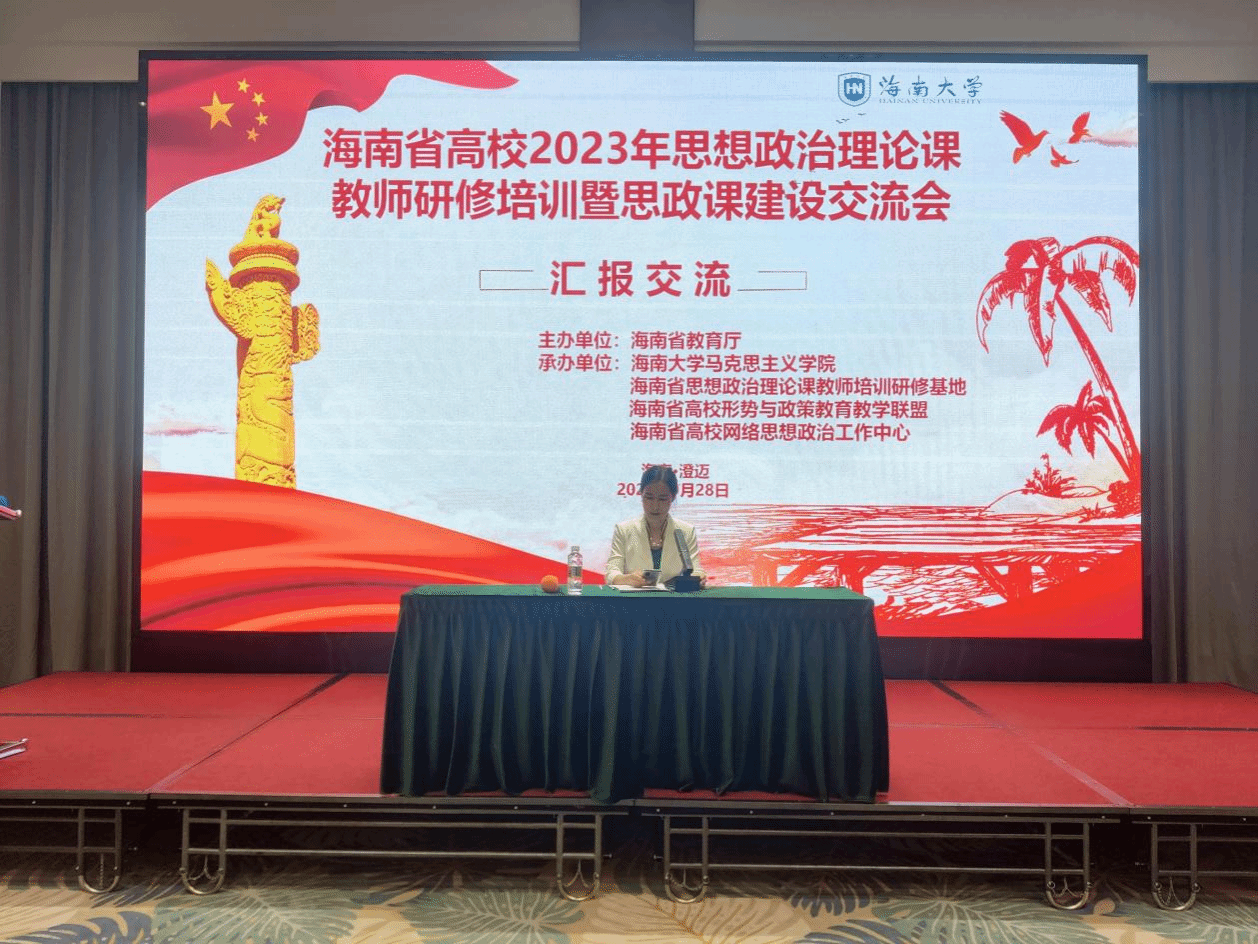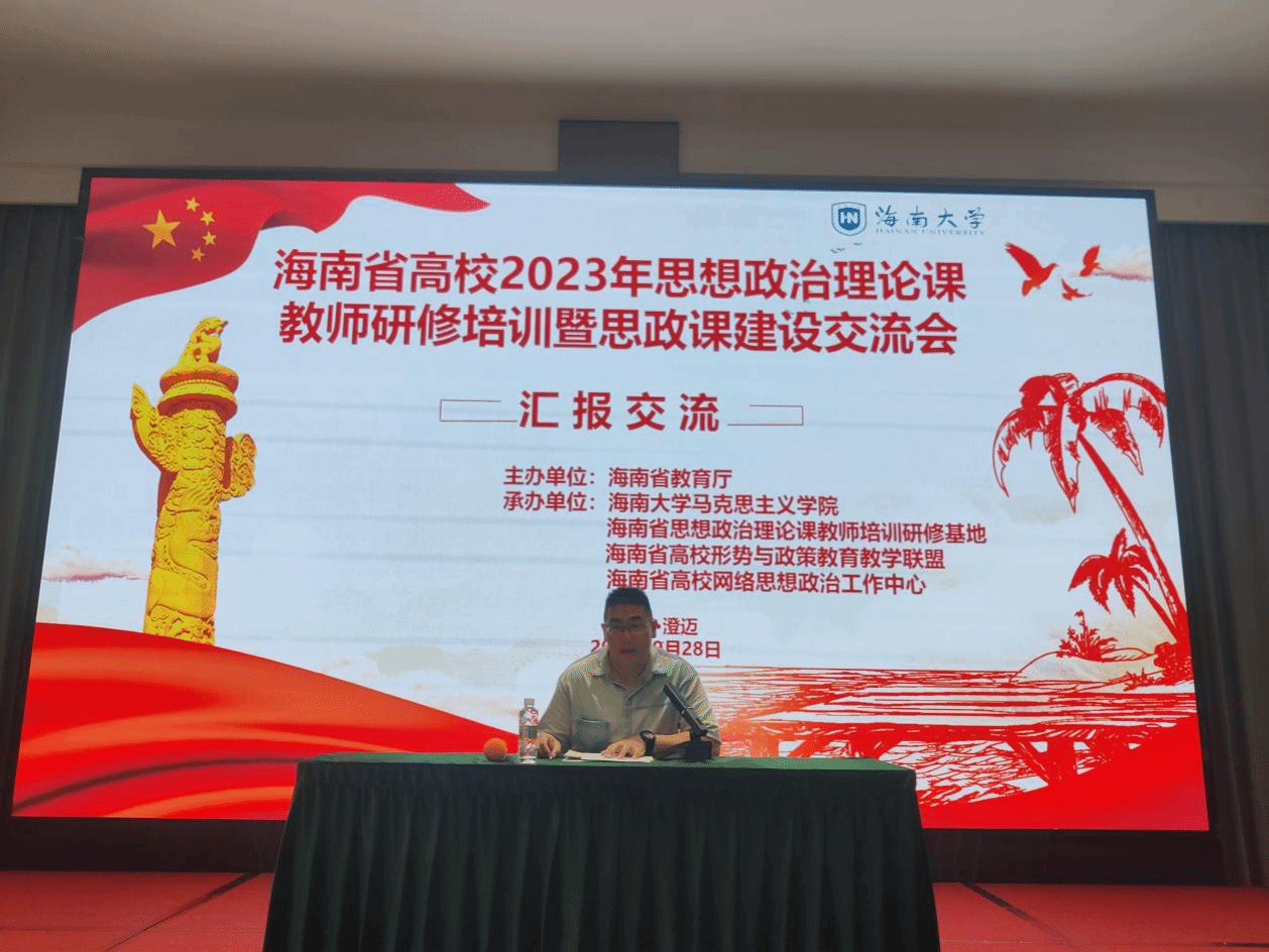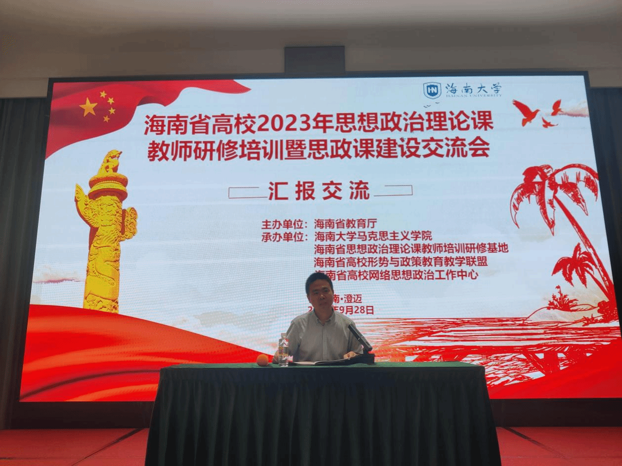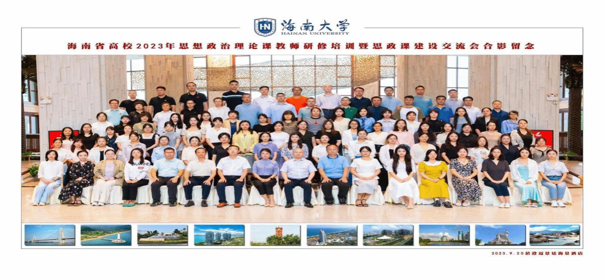 为深入贯彻落实党的二十大精神,提升我省高校思想政治理论课教师队伍建设水平,2023年9月25日至9月28日,海南省高校2023思想政治理论课教师研修培训暨思政课建设交流会在海南省澄迈县举行。本次研修班由海南省教育厅主办,w66利来旗舰厅、海南省思想政治理论课教师培训研究基地、海南省高校形势与政策公司产品联盟和海南省高校网络思想政治工作中心承办,来自海南省内22所高校95位思政课教师参会。