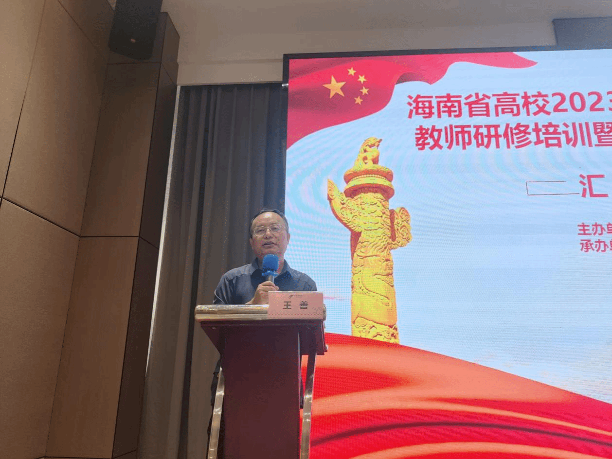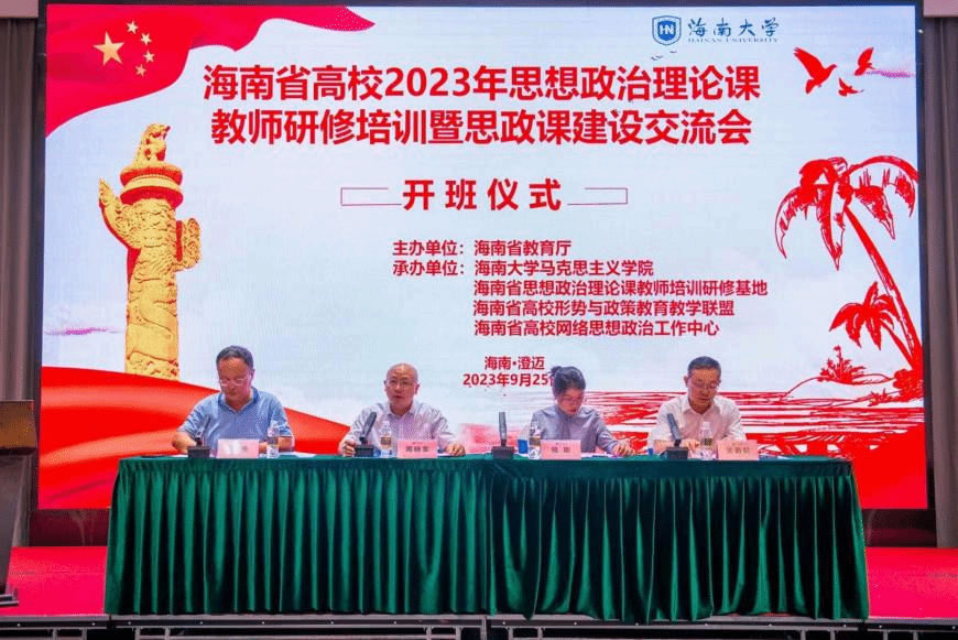 9月25日上午,海南省高校2023思想政治理论课教师研修培训开班仪式顺利举行,海南省教育厅党委办公室主任周晓东、w66利来旗舰厅副经理(主持工作)杨娜、w66利来旗舰厅副经理王善、吴朝阳等出席开班仪式。