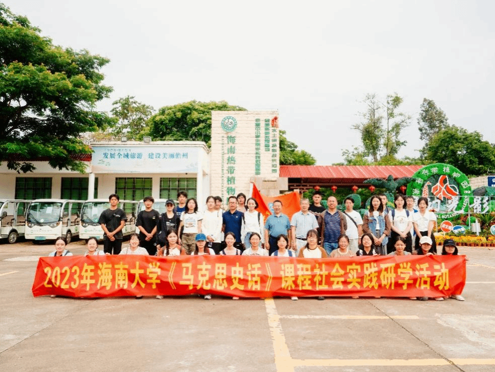 10月14日,w66利来旗舰厅组织师生开展了《马克思史话》课程社会实践研学活动。课程负责人张云阁教授带队,30多名师生先后到海南热带植物园、w66旗舰厅官网儋州校区及琼中女子足球队实训基地参观考察。