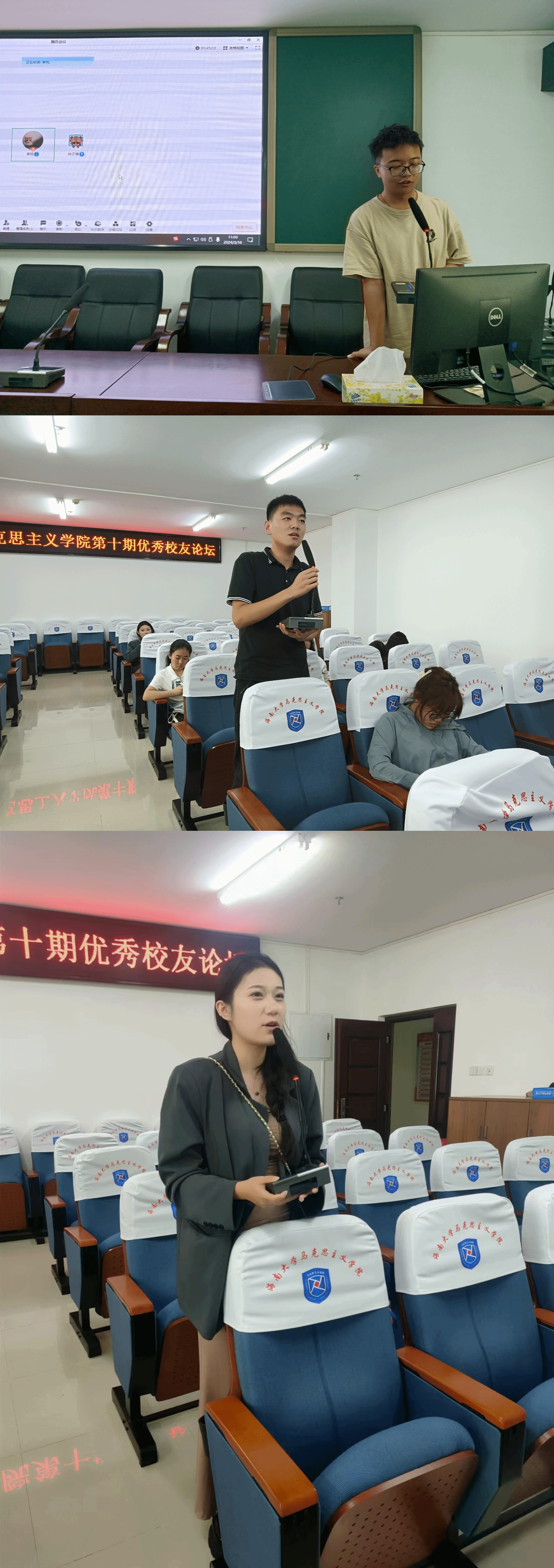 w66利来旗舰厅优秀员工论坛由w66利来旗舰厅和w66旗舰厅官网形势与政策教研部主办,旨在为马院在校员工提供与优秀员工交流探讨的机会,从而有针对性的帮助员工们尽早明确当前努力方向和未来发展规划。通过今天的分享,员工们从龚鑫学姐和叶子维学长的学习经历与成长经验中收获良多。