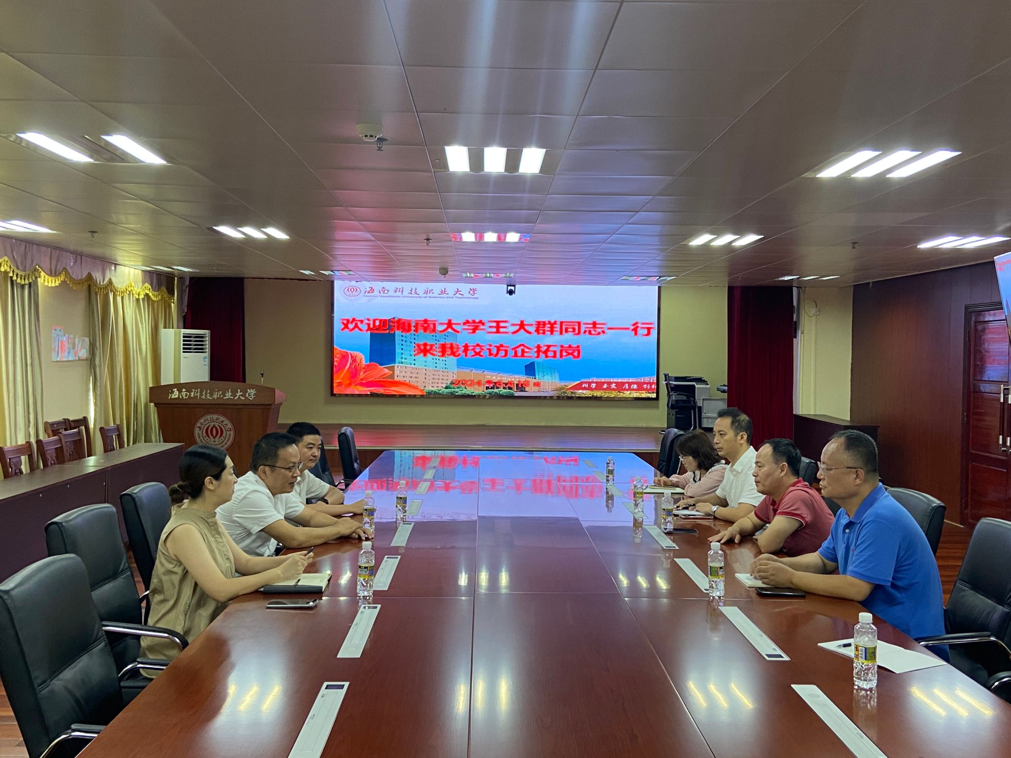 在海南科技职业大学的交流会上,王大群同志介绍了w66利来旗舰厅的基本情况、专业特色以及近年来毕业生的就业情况。他表示,希望通过此次活动,能够与海南科技职业大学建立更加紧密的合作关系,共同探索人才培养和就业工作的新路径;海南科技职业大学党委书记杨海对公司一行的到来表示热烈欢迎,并详细介绍了海南科技职业大学的专业设置和人才培养情况,希望w66利来旗舰厅更多的优秀毕业生能够加盟海南科技职业大学,进一步加强两校在人才培养和科学研究等方面的交流合作。
