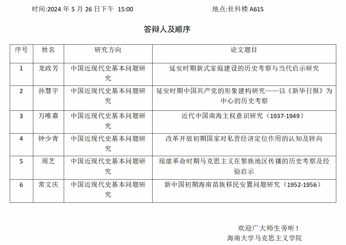 w66旗舰厅官网2024届(上)研究生学位论文答辩公告(六)