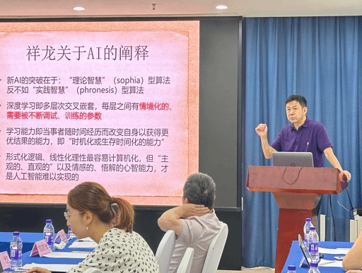 下午第一场由北京大学李猛教授主持。同济大学柯小刚教授认为“现象学的中国化”应理解为现象学与中华古学之间自然而深层的相契,而非外来哲学的本土改造,通过现象学方法重新解读中华古学,能赋予传统思想新的生命力。山东大学的李章印教授认为建设现代文明需对汉字进行创造性阐释,推动传统训诂学在保持独特性的基础上实现当代创新。西安交通大学的王珏教授从儒家角色伦理学视角出发,探讨养老机器人是应替代人类的社会角色还是仅作为辅助,以系统评估其伦理适用性。下午第二场由浙江社会科公司李旭教授主持。云南大学的王志宏副教授表示,张祥龙教授以比较哲学的视角探讨中国古代哲学的合法性与可能性,阐明了比较哲学在中西哲学对话中的关键作用。辽宁大学赵炎副教授通过分析张祥龙先生构成边缘域思想的五个维度,探讨了实际生活经验中的时间、空间和阴阳如何在缘-源发生中构成边缘域。山东大学的祁伟博士认为张祥龙教授以“非普遍主义”视角揭示了儒家哲学的独特性,主张儒家文化的核心在于实践中的“慈-孝”之爱,并提出重建儒教应以家庭德性为基础,推广至社会各领域。维也纳大学的朱锦良博士就非概念化思维进行阐述以及对汉语思想中语言和实在的关系与西方思想中语言和实在的关系行了类比。